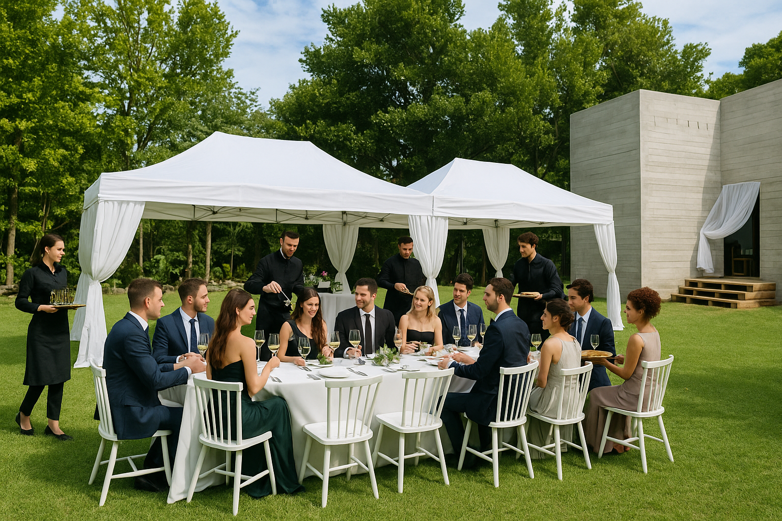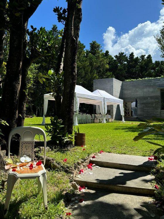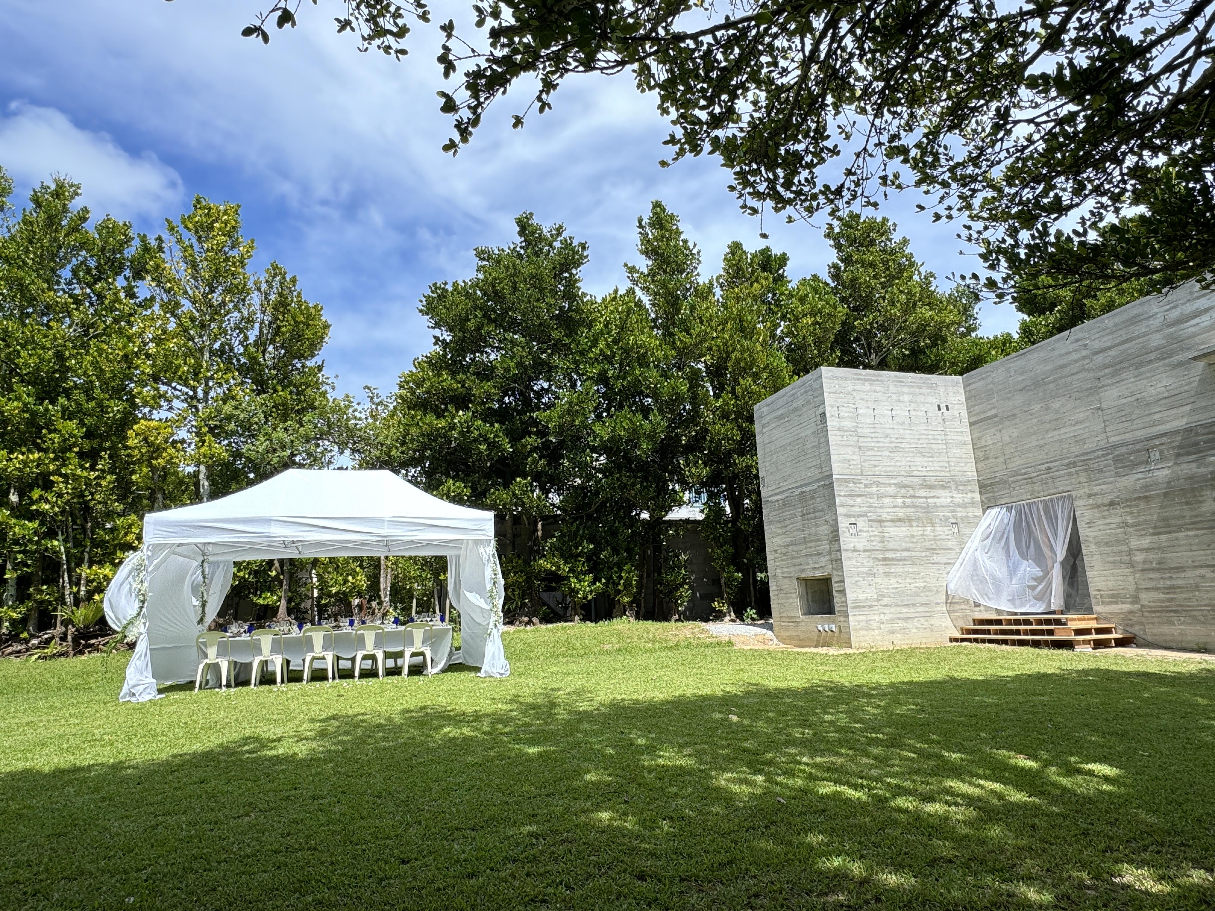 | 設備 |  ガーデン / 大型テント 2基 レストラン棟 / 控え室 / 個室トイレ 2部屋 家具類 / 食器 / カトラリー / グラス類 音響機器 / 映像機器 |